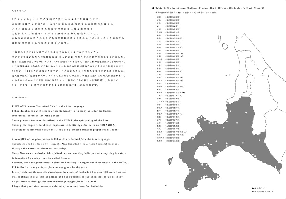 谷杉アキラ 写真集 ピリカノカ 出版 道内各地のアイヌ語由来の地を丹念に巡り、「カムイの時代の北海道原風景」を映像化した世界初の写真集。『心にそっと寄り添う』珠玉のモノクローム111枚を収録。北海道の名付け親である探検家・松浦武四郎も見たであろう未来の北海道人たちへ残したい故郷の美しい景観群。今ここから北海道150年の時空を超える旅が始まる!